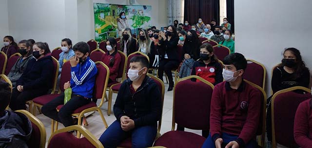 Maşuklu Hayrittin Çolakoğlu İlk/Ortaokulu’nu ziyaret eden Antakya İlçe Milli Eğitim Müdürü Mesut Çerko, Şube Müdürü Osman Şevket İyi ve Proje ekibinde gönüllü olarak görev alan Fatma Betül Yalım, Zübeyde Kutlu, Aslı Esen ve Elif Pınar Aygün, öğretmen ve öğrencilerle buluşarak proje sunumuna katıldı. -Selvi Günay-