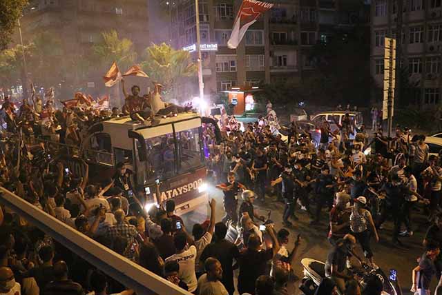 Hatayspor’da, şampiyonluk kutlamaları sırasında sağlık kuralları hiçe sayıldı. Gerek stadyumda, gerekse Antakya alanlarında, cadde ve sokaklarında, konvoylu geçişler ile Atatürk Caddesi ve Atatürk Alanı’ndaki kutlamalarda, sosyal mesafe tamamen hiçe sayıldı, yüzlerce kişi maskesiz, mesafesiz şekilde sevindi. Sağlıkçılar, Bordo-Beyazlı Kulübün, şampiyonluk kutlamalarındaki kovid kuralarını hiçe sayan uygulamasının sonuçlarının bir hafta içinde görülebileceğine dikkat çekerek, bundan sonraki toplu kutlama ve konvoylarda kurallara asgari ölçüde uyulması gerekliliğine özellikle vurgu yaptılar.
