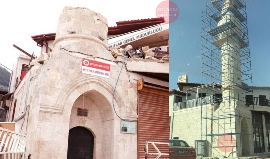 Hatay’ın merkez ilçesi Şeyhali Mahallesi’nde bulunan tarihi Şeyh Muhammed Camii’nin depremde yıkılan minaresi, aslına uygun olarak yeniden inşa edilip yerine yerleştirildi. Kurtuluş Caddesi üzerindeki tarihi yapılar gibi, cami de restorasyon süreciyle yeniden ayağa kaldırılıyor.