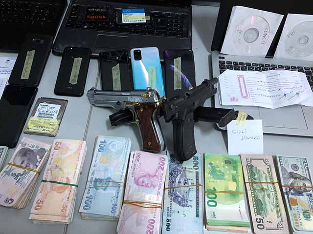 30 adet dijital materyal ( telefon, bilgisayar, hard disk vb.), 2 adet kurusıkı tabanca ve bu tabancalara ait şarjör ve mermiler, 1 adet av tüfeği ve 50.180 dolar, 19.845 TL, 5.300 Riyal ve 895 Euro (yaklaşık olarak 400.000 Türk Lirası) nakit para.