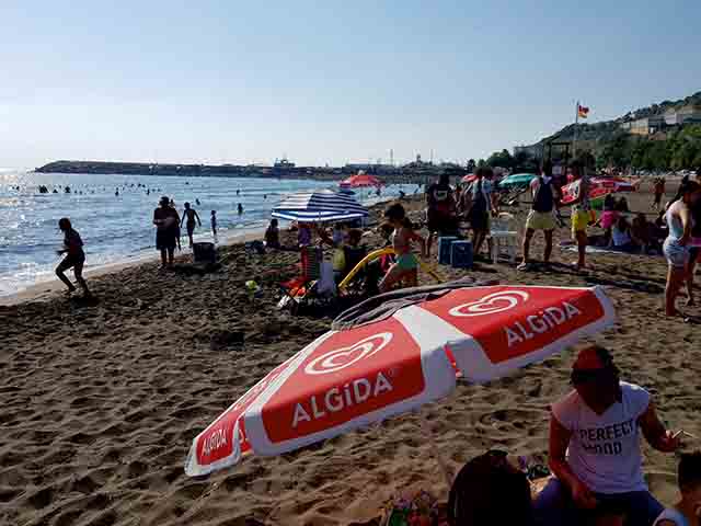 Salgın sebebiyle gündeme taşınan ‘izole tatil’ anlayışına uygun çalışmalar tüm turistik alanlarda hayat geçirilirken, Hatay’ın Samandağ ilçesi Çevlik sahillerinin hafta sonu halinden yansıyan son fotoğraflar, ‘izole’ kelimesini de ‘sosyal mesafe’ algısını da rafa kaldırdı. İç içe geçmiş kalabalıkların yarattığı fotoğrafa bakanlar, pandemi sürecinin en hassas döneminde plajları dolduranlar için ‘riski de arttırıyorlar’ tespitinde bulundu.