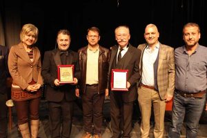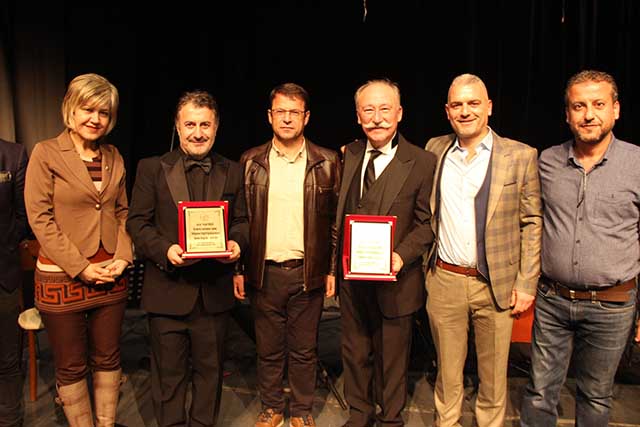 Daha sonra, Başkan Eryılmaz, usta oyuncular Altan Erkekli ve Veysel Diker’e Samandağ’ın tanıtımına yapmış oldukları katkılardan dolayı teşekkür etti, plaket takdim etti. -Mehmet ÖZGÜN-