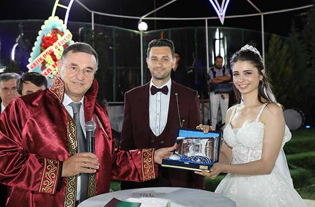 Hatay BŞB Başkanı Lütfü Savaş’ın kardeşi Mehmet Savaş’ın oğlu Serhan ile Antakyalı Zervent Ailesinin güzel kızı Simay, geçtiğimiz hafta sonunda nikah ve düğün töreni sonunda mutlu yuvalarını kurdu. “Serhan-Simay” çiftinin nikahını, damadın amcası olan BŞB Başkanı Lütfü Savaş kıydı ve evlilik cüzdanını da, babaanne, gelin ile damada teslim etti.