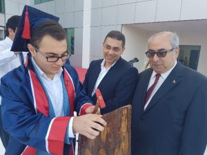 Okul bahçesindeki mezuniyet töreninde, belgeleri Hatay Sınav Eğitim Kurumları Kurucusu Zeynel Paşa, Lise Müdürü Abdurrezzak Öğün ve Lise