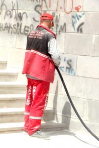 Vatandaşın sorusuna bizler de bir ek yapalım mı? Çünkü tarihi ve kültürel yapıların en fazla olduğu yerlerden biri olan İstanbul’da Fatih Belediyesi Çevre Koruma ve Kontrol Müdürlüğü bünyesinde oluşturulan kumlama ekibi, bu tür sorunlara karşılık hayata geçirilmiş birimlerden sadece bir tanesi. Oluşturulan ekipler, ilçede bulunan çeşme, türbe, okul, cami, kilise gibi tarihi yapıların duvarlarına yazılan grafiti, sprey boya yazılarını kumlama makineleriyle ve bu makineler için özel üretilen kuvars garnet kumu sayesinde, yapıların doğal dokusuna zarar vermeden temizliyor. Peki, biz neden aynı şeyi yapmıyoruz? Ya da yapmak için daha ne kadar kirlenmeyi bekliyoruz? -Tamer Yazar-