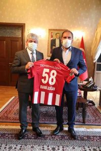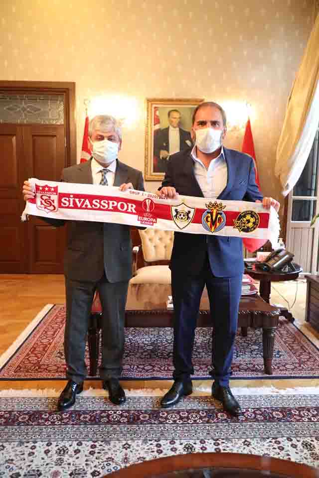Ana Sayfa › Gündem › Sivasspor Heyeti Valilikte…Sivasspor Heyeti Valilikte… Giriş: 03-11-2020 05:21Güncelleme: 02-11-2020 17:43 GündemManşet ABONE OL Dün Atakaş Hatayspor ile karşılaşan Sivasspor’un Kulüp Başkanı Mecnun Otyakmaz ile Yönetim Kurulu üyeleri, dün Vali Rahmi Doğan’ı ziyaret etti, takım forması hediye etti. Sivaslı olan Vali Doğan da heyete maç öncesi başarı diledi. -Cemil Yıldız-