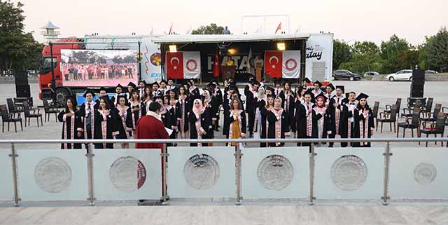 Hatay MKÜ Dişhekimliği Fakültesi tarafından düzenlenen 2020-2021 Eğitim Öğretim Yılı mezuniyet töreni, Tayfur Sökmen Kampüsü Amfi Tiyatro alanında gerçekleştirildi. Tören, saygı duruşu ve İstiklal Marşı’nın okunmasının ardından yapılan protokol konuşmalarıyla başladı.