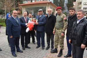 Ziyaretin sonunda, Antakya Belediye Başkanı İsmail Kimyeci, Şehit Ailelerine Kuran-ı Kerim hediye etti. -Cemil Yıldız-