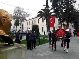 Hatay Vali Vekili Orhan Mardinli’nin valilik binası önünde bulunan Atatürk Anıtı ve Tayfur Sökmen Anıtına çelenk koymasıyla başlayan tören, saygı duruşunda bulunulması ve İstiklal Marşı’nın okunması ile devam etti. -Cemil Yıldız-