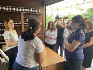Daha sonra, Vakıflı Kadın Kooperatifi’nde çalışan kadınları ziyaret eden Buldan ve beraberindeki heyet, kadınların neler yaptığını sorarak, yaşadıkları zorlukları dinledi.