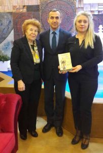 Prof. Dr. Bilge Aydoğan, Naim Babüroğlu’na kitabını imzalatmak için adım adım takip etti.