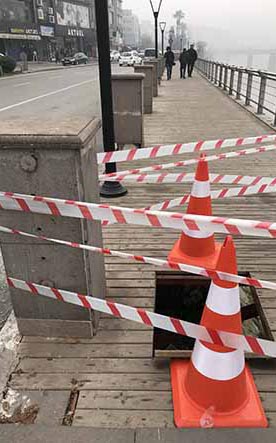“Zemindeki boşluğu görmüştük, ardından etrafını çevirmişler, olası bir kazaya karşın ama… Ufak bir alanı hemen tamir etmek ya da güvenlik altına almak yerine, tüm yaya yolunu kapatmışlar. Bu da güvenlik olmuş! Tamam da, burasını kapatınca, insanlar caddeye inmek zorunda kaldı! O zaman, güvenlik nerede?”