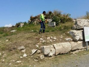 Defne Belediyesi Park Bahçe Müdürlüğü’ne bağlı ekipler, 1500 yıllık bir tarihe ev sahipliği yapan St. Simon Manastırı’nda ot biçme