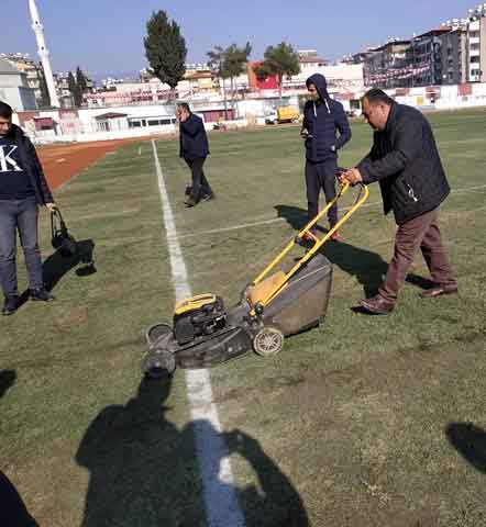 Dünkü inceleme öncesi ve sırasında, Büyükşehir Belediyesi’ne ait iş makinaları ve silindirler, stadyumda hummalı bir çalışma yürüttü.