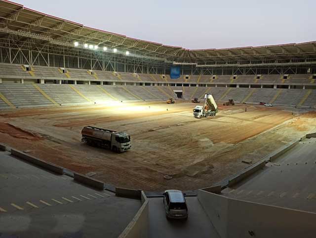 Hatay Stadyumu’nda, çimlendirme ve koltuk montaj işlemleri sürüyor. Vali Rahmi Doğan, ihale ile verilen işin 90 günde tamamlanacağını, 20 Haziran’da ihalenin gerçekleştiğini ve 20 Eylül’de stadı teslim alacaklarını söyledi.
