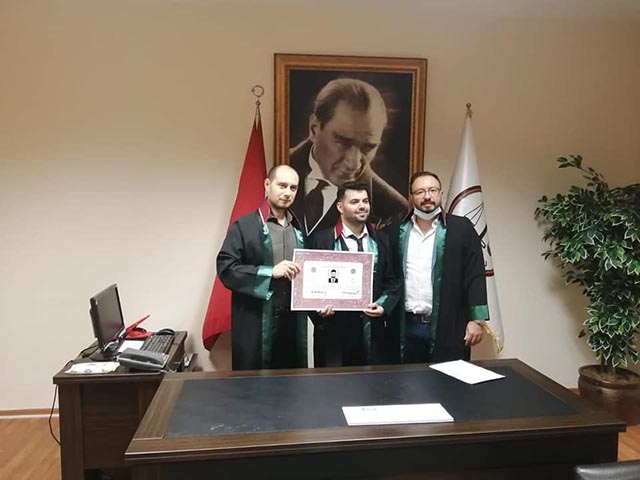 Staj dönemini başarı ile tamamlayan Ali Miçooğulları, İskenderun Adliyesi’nde düzenlenen yemin töreni sonunda, Yönetim Kurulu üyeleri Av. Murat Cengiz Güzeltepe ve Av. Hamdi Evren’in elinden ruhsatını aldı. Ali Miçooğulları’na cübbesini, Yönetim Kurulu üyesi Av. Murat Cengiz Güzeltepe giydirdi.
