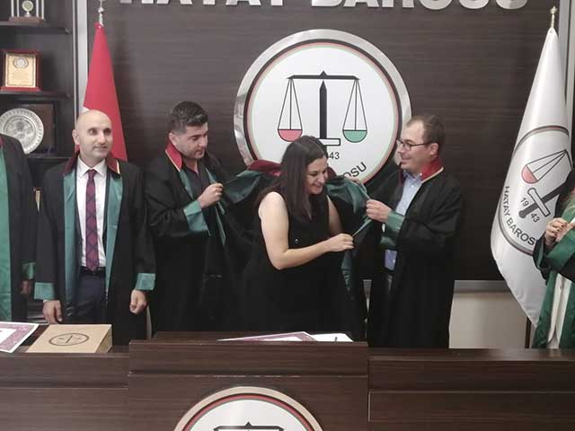 Hatay Barosu’nda, geçtiğimiz hafta sonunda ve önceki gün olmak üzere; Antakya, Dörtyol ile İskenderun Adliyelerinde stajyerlik süreçlerini başarıyla tamamlayan Avukatlar mesleğe ilk adımı attı, cübbe giyip ruhsatname aldı ve yemin etti.