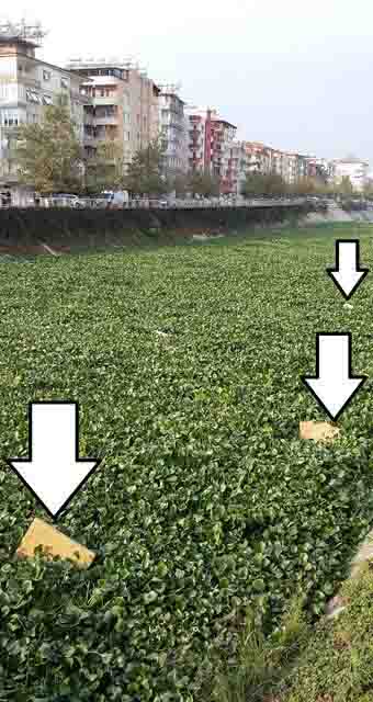 Hatay Büyükşehir Belediyesi’ne bağlı ekiplerce daha önce yoğun bir çalışma çerçevesinde temizlenen ve iş makineleri yardımıyla da nehir sularından uzaklaştırılan su sümbülleri, bugün yine temizlendikleri noktalarda birikmeye devam ediyorlar. Büyükşehir Belediyesi, temizlik çalışmasına tekrar başlar mı bilinmez ama, bugünlerde su sümbüllerinin oldukları alanlarda birikmeye başlayan başka şeylerimiz daha var!