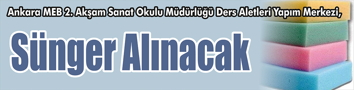 Ankara MEB 2. Akşam Sanat Okulu Müdürlüğü Ders Aletleri Yapım Merkezi, sünger alacak.