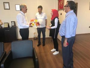 Hatay İl Milli Eğitim Müdürü Kemal Karahan, Gaziantep Üniversitesi Yabancı Uyruklu Öğrenci Sınavı GAÜNYÖS-2019’da 80 sorunun tamamını doğru cevaplayarak 100 tam puan alan, ayrıca İstanbul Üniversitesi Yabancı Uyruklu Öğrenci Sınavı İÜYÖS-2019’da 80 sorudan 79’una doğru cevap vererek 98,43 puan alan, Antakya Cemil Meriç Geçici Eğitim Merkezi 12. Sınıf öğrencilerinden Yomna Nasif’i makamında kabul etti.