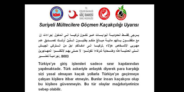 İçişleri Bakanlığı, ilimizdeki Suriyelilerin cep telefonlarına gönderdiği Türkçe ve Arapça uyarılarla, göçmek kaçakçısı durumuna düşmemeleri konusunda uyardı.
