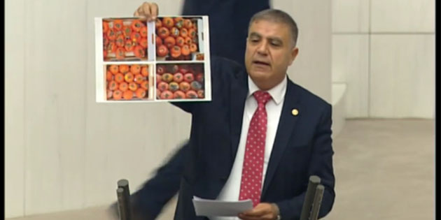 Güzelmansur, TBMM kürsüsüne, elinde Hatay ürünü HURMA dolusu bir sandıkla çıktı.