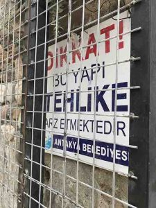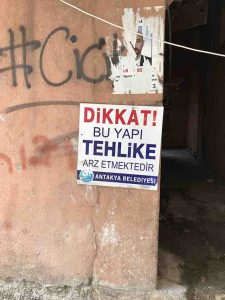 “Kanun yoluyla belediyeler bünyesinde kurulan Koruma Uygulama ve Denetim Büroları (KUDEB) tarafından Antakya evlerinin yıkılmaya yüz tutmuş binaları üzerine ‘bizden bu kadar’ dercesine ‘uyarı’ levhaları asma geleneğimiz sürüyor. Peki, bu ‘uyarı’ levhalarından daha kaç tane asarız?” diye sormuşuz 2017 senesinde. 2020’deyiz ve hala o tabelaların kalabalığındayız! Çözüm?