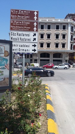 Burası, Antakya, Kışla noktası! Kavşağa dahil ara noktadaki isim tabelaları gözünüze çarpıyor. Yön tabelasına ekli isimler arasında üç turizm destinasyonu var. Biri Ulu Camii, diğeri Saint Pierre Kilisesi ve sonuncusu da Hatay Arkeoloji Müzesi. Trajan Su Kemeri mi? Burada ne ona dair bir isim ne de bir yönlendirme var. Bu noktada durup da ‘adres arıyorsanız eğer’, kaybolmanız içten bile değil!