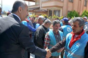 “Ben bu toprakların çocuğuyum. Buradaki işçilerin yüzde 80’i beni tanır. Kendi yaşantımızda kullandığımız üç kelimeden biri emektir, emeğe saygıdır. Biz o şiarla yaşadık ve yaşamaya devam ediyoruz. Emekten yana olan tüm hak arama mücadelelerinde yer aldık. Göreve geldiğimizde borcu tasfiye etme anlamındaki ilk hamlemiz, emekçi kardeşlerimizin maaşlarını ödemek oldu. Sonra bu arkadaşlarımızın sendikalarının alacalarını ödemek, daha sonra emekli olup da kıdem tazminatlarını alamayan işçilerin kıdem tazminatlarını ödemek oldu. Kısacası; bu konuda çok hassasız, çok duyarlıyız. Fakat herkes kendi imkanları doğrultusunda hareket eder. Biz bu toplu sözleşme görüşmelerini yaparken, işçi kardeşlerimizi ve kendi imkânlarımızı düşündük. Bizim prensimizde ağlamak yok. Biz buraya geldiysek bir çözüm merciyiz. Bu masada duruyorsak, belediye başkanlığının gereğini yapacağız. Mevcut imkânları efektif kullanarak sıkıntıları aşmaktır önemli olan ve biz hep bunu yaptık. Emekçinin alın teri kurumadan hakkını ödeyeceksiniz sözünü dikkate alarak hareket ettik. Olağanüstü sınırlara sahibiz, olağanüstü kırsal bir kentiz ve olağanüstü sıkıntılarla karşı karşıyayız. Ama alacağımız personel sayısı ise olağandışıdır. Biz bu zor koşullarda bile parmakla gösterilen bir belediye konumundayız. Bu ilçeye hizmet vereceğiz ve bu hizmeti sizlerle birlikte vereceğiz arkadaşlar. Bu kent daha güzel yerlerde olmayı hak ediyor. Çok ciddi hamlelerimiz var. İnşallah gerek meclislerimizi, gerek nikahlarımızı, gerekse sosyal, kültürel, siyasal etkinlikleri güzel salonlarda yapacağız. Yeni binamız için proje çalışmalarımız başlamış durumdadır.”