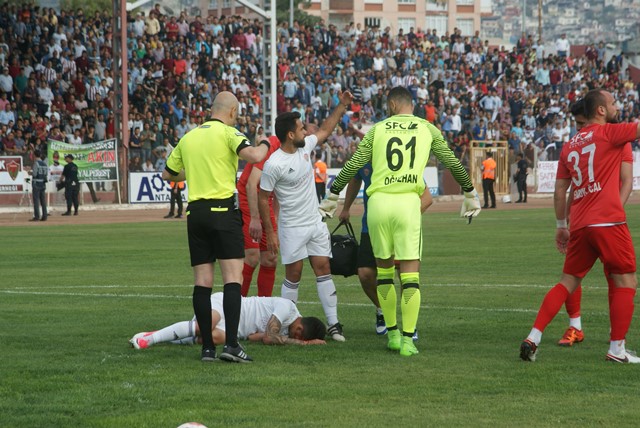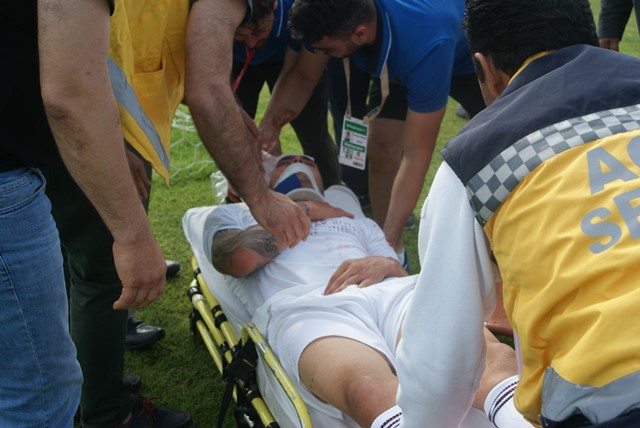 TAHA, Antakya’daki ilk maçta rakibiyle girdiği ikili mücadelede kafası yarılmış, kanlar içinde yerde kalmıştı. Taha, götürüldüğü hastanede başı sarıldıktan sonra stada dönmüş, arkadaşları için dua etmişti. Genç futbolcu, kanlar içinde yerde kaldığı sakatlığının ardından 3 gün sonra takımıyla yine maça çıktı.