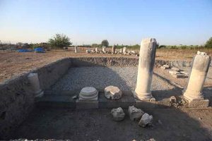 Sütunlu caddenin güney kısmında mimari blokların dağınık durduğu görülerek önemli bir yapı olabileceği düşüncesiyle çalışmalar burada yoğunlaştı. Çalışmalar sonucu başlangıçta tapınak olarak tanımlanan sonradan kiliseye dönüştürülmüş, üç koridorlu, 35 metre uzunluğunda, 27 metre genişliğinde MS 5. yüzyıl başlarına tarihlenen yapı bulundu. Kazı ekibi, çalışmaların ilerlemesiyle birlikte bulunan kilise ile aynı temele sahip tapınak hakkında daha fazla mimari obje ve detaylı bilgiye ulaşmayı hedefliyor.