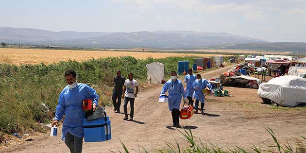 İlçede 7 gruptan oluşan sağlık ekipleri, Suriye sınırındaki mevsimlik tarım işçilerinden belirlenen kriterleri taşıyanlara aşılarını yapıyor.
