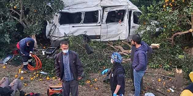 İlimiz Erzin ilçesinde, geçtiğimiz hafta sonunda tarım işçilerini taşıyan bir minibüs devrildi, 9 kişi yaralandı.