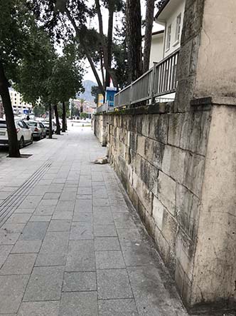 G.J. >> Her gün çocuklarımız okula giderken bu kaldırımı kullanıyor. Ama böyle olacağı da belliydi! Duvardaki taşlar biraz öne çıkmıştı. Şimdi gelip, bu taşı ya kaldırıp götürürler, ki kimse ‘ne oldu’ anlamasın ya da alırlar ve bir şekilde yerine yeniden monte ederler!