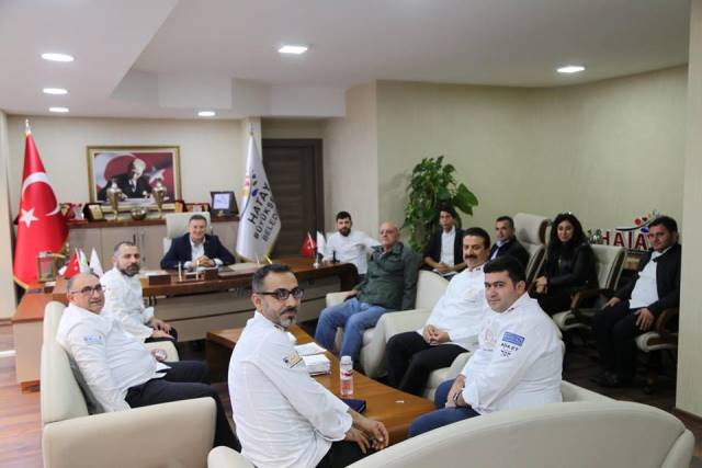 Kısa adı TAŞKAPON olan Tüm Aşçılar ve Pastacılar Konfederasyonu’nun Genel Başkanı ile Yönetim Kurulu üyeleri Hatay’da… Hatay’a gelen heyet üyeleri, ilk etapta Büyükşehir Belediye Başkanı Lütfü Savaş ile görüştü. Görüşmede ana gündem maddesi, Hatay’ın Gastronomi şehri olmasına ilişkin gelişmeler oldu. TAŞKAPON Heyeti üyeleri, ziyaretleri sırasında, Hatay’ın Gastronomi Şehri olmasını sağlayan Büyükşehir Belediye Başkanı Lütfü Savaş’a Plaket verdi. Ziyareti değerlendiren BŞB Başkanı Lütfü Savaş, “Tüm Aşçılar ve Pastacılar Konfederasyonu (TAŞPAKON) ile Gastronomi yolunda birlikte ilerleyeceğiz” dedi.
