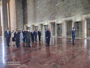 8-9-10 Temmuz’da seçilen Türk Dişhekimleri Birliği 18.Dönem Merkez Yönetim ve Merkez Denetleme Kurulu üyeleri, 28 Temmuz Çarşamba günü yapılan ilk toplantısında görev dağılımını ve Anıtkabir ziyaretini gerçekleştirdi. Anıtkabir’de düzenlenen törende, Atatürk’ün mozolesine çelenk konuldu ve saygı duruşunda bulunuldu.