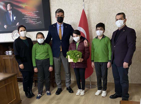 “Şehit Nizam Akdeniz Ortaokulu öğrencilerinin topraksız tarım projesiyle yetiştirdikleri marullar, Müdür Yardımcısı İzzet Olğar, Proje Sorumlusu Fen Bilimleri Öğretmeni Esra Kurt ve beraberindeki öğrenciler tarafından, İlçe Milli Eğitim Müdürümüz Sayın Mesut Çerko’ya takdim edildi. Projede emeği geçen yönetici, öğretmen ve öğrencimizi tebrik ediyoruz.” Cemil Yıldız-