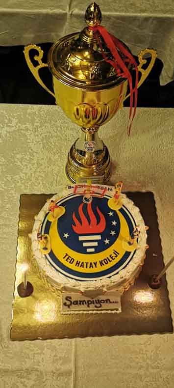 TED Hatay Koleji’nin Genç (A) Erkek Basketbol Takımı, şampiyonluk yemeğinde buluştu. Keyifle geçen gece, şampiyonluk pastasının kesilmesiyle sona erdi. Öğretmen ve öğrenciler, TED Hatay Koleji Basketbol Takımı’nı bölgelerde en iyi şekilde temsil edeceklerini söylediler. Hatay TED Koleji Yönetimi, şampiyon sporcuları kutlayarak, “Öğretmenimize ve öğrencilerimize, bölge müsabakalarında başarılar dileriz” mesajı verdi. -Yusuf Cemil Karaçay-