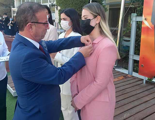 TED Hatay Koleji kampüsünde düzenlenen, yönetim ve eğitim kadrosunun hazır bulunduğu törende, 2021-2022 Eğitim-Öğretim yılına “merhaba” denilirken, Okul Genel Müdürü Prof. Dr. Mustafa Özat tarafından okulda yeni göreve başlayan öğretmenlere rozet takıldı.