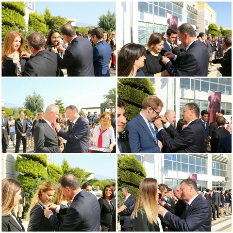 Dün ilimizdeki özel okullardan TED Hatay Koleji bahçesinde yeni öğretim yılına başlanması dolayısıyla tören gerçekleştirildi. Törene Büyükşehir Belediye Başkanı Lütfü Savaş da katıldı ve öğretmenlere yeni eğitim-öğretim yılı arması taktı.