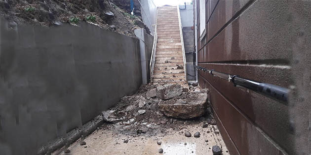 Yağışlarla birlikte, beton ve toprak kümeleri, heyelanın etkisiyle aşağıya yuvarlandı. Yaya geçişi olan bölgedeki bu tür doğa olaylarının can ve mal güvenliğini tehlikeye düşürdüğü kaydedilerek, Defne Belediyesi’nden soruna el atması istendi.