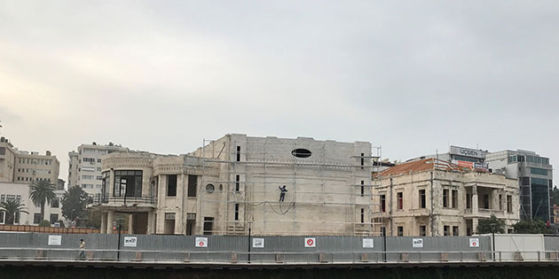 81 yıllık sürede sinema salonu, künefe salonu, lokanta gibi iş kolları için kullanılan binada çalışma yapan ekipler, özenli bir çalışma ile binanın taş yüzeyindeki kiri temizlerken, örnek bir çalışmaya da imza atıyor.