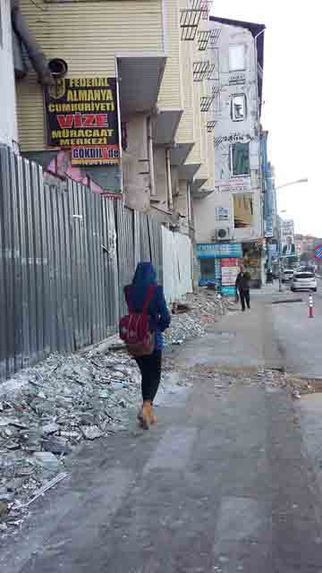 L.M. > Grup olarak geldik, geziyoruz. Her şey çok güzel. Hele ki künefe ve tabi yemekleriniz! Sorduğunuz konuya vakıf değilim, ama… Burada insanlar, kenti, batı ve doğu diye ayırmışlar sanırım… Soruna bu yönden bakarsanız eğer; batıdan bakılan doğunun bu ön cephesinin temizlenmesi lazım bence. Yazık etmişler. Belediyeler, kenti yönetenler… Nasıl oldu da bu kadar yüksek katlı beton binalarla arka kısmı kapatabilmişler? Nasıl olmuş da izin çıkmış onca yüksek yapıya? İstanbul için konuşup durdukları da bu aslında, biliyor musunuz? ‘Kent siluetini öldürdüler’ tartışması tam olarak bu!