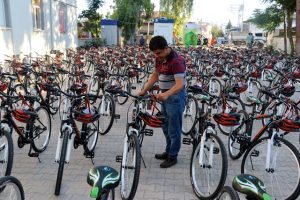 Konuşmaların ardından TEOG’da 100 ve üzerinde net yapan 160 öğrenciye bisiklet ve kask dağıtıldı. Öğrencilerin hediyelerini aldıktan sonra yaşadıkları mutluluk ise kameralara yansıdı. -AA-