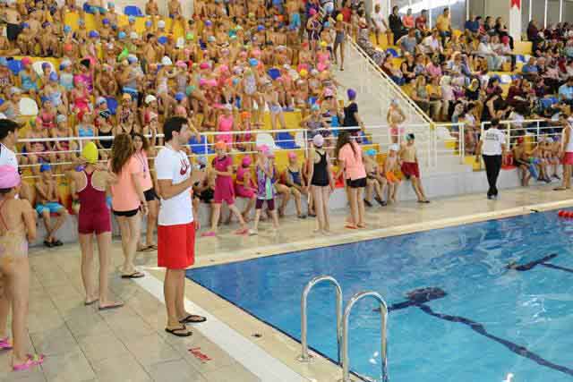Spor Kompleksi yüzme havuzunda binlerce çocuk ve genç yüzme sporu yapıyor.
