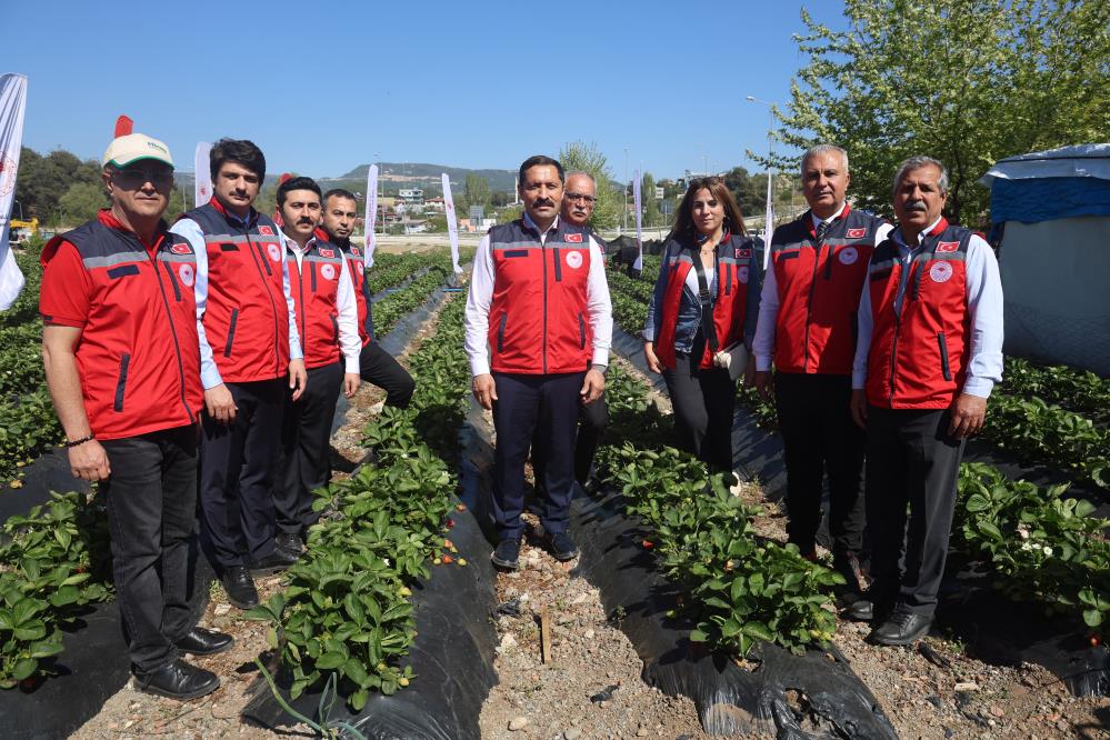 Hasat törenine katılan Hatay Valisi Mustafa Masatlı ve İl Tarım ve Orman Müdürü Abdurrahman Türkmen, çilek tarlasında üreticilerle bir araya gelerek rekolte beklentilerini paylaştı.