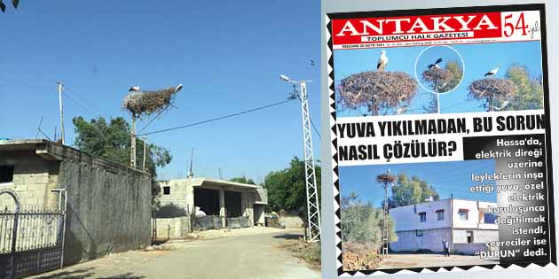 “Hassa’da, elektrik direği üzerine leyleklerin inşa ettiği yuva, özel elektrik kuruluşunca dağıtılmak istendi, çevreciler ise ‘DURUN’ dedi.