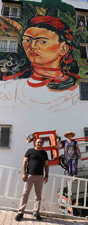 Hatay’daki belediyeler için de örnek gösterilen çalışma için konuşan Toroslar Belediye Başkanı Atsız Afşın Yılmaz, görevi devraldığı Toroslar Belediye Başkanı Hamit Tuna’nın projesini Güneykent Mahallesi’ndeki toplu konut binalarında devam ettirmenin mutluluğunu yaşadıklarını söyledi. Yılmaz, toplu konut binalarının eskiyen ve yıpranan duvarlarını ünlü ressamların eserleriyle süsleyerek bambaşka bir görünüm kazandıracaklarının altını çizerek, “Duvar sanatı, en iyi anlatım sanatıdır. Sanatı, insanların ayağına getiriyoruz” diye konuştu. Ressam Bilgin Hazar ise, Güneykent Toplu Konut Binalarında gerçekleştirdiği ilk dış cephe çalışmasına, dünyaca ünlü Ressam Frida Kahlo’nun ‘Ben ve Maymun’ adlı çalışmasının reprodüksiyonu ile başladı.