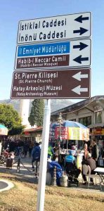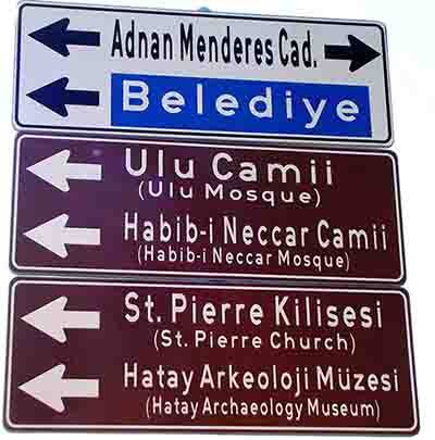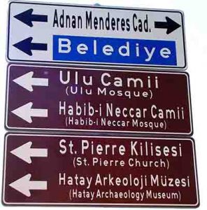 Ancak normal şartlarda doğru bir yönlendirme yapan bu tabela ve benzerleri, Hatay Büyükşehir Belediyesi tarafından Antakya kent merkezinde, birçok yolun trafik yönünde değişiklik yapılmasının ardından işlevini yitirmiş durumda!