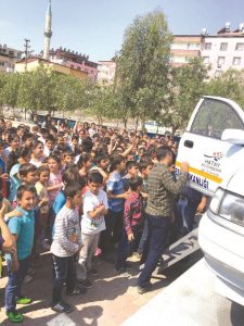 aracını izleyerek emniyet kemerinin ne kadar hayati bir önem taşıdığını uygulamalı olarak öğrendi. Çocuklara trafik kurallarını da anımsatan HBB ekipleri, karşıdan karşıya geçişler, gece yürüyüşleri, ışıklı işaret cihazları, emniyet kemeri, bisiklet ve ilk yardım ile okul servis araçlarında uyulması gereken kurallar hakkında bilgiler verildi.